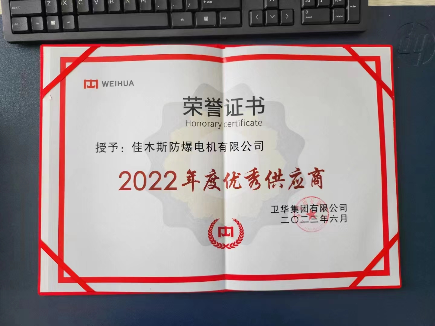 佳木斯防爆電機(jī)榮獲衛(wèi)華集團(tuán)2022年度**供應(yīng)商
